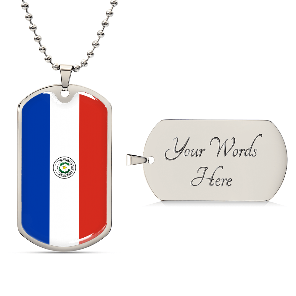 Paraguay Flag Necklace Stainless Steel or 18k Gold Dog Tag